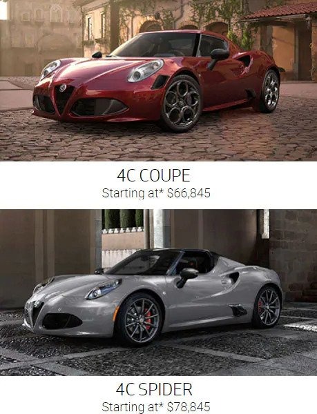 Alfa Rome 4c Price in Canada